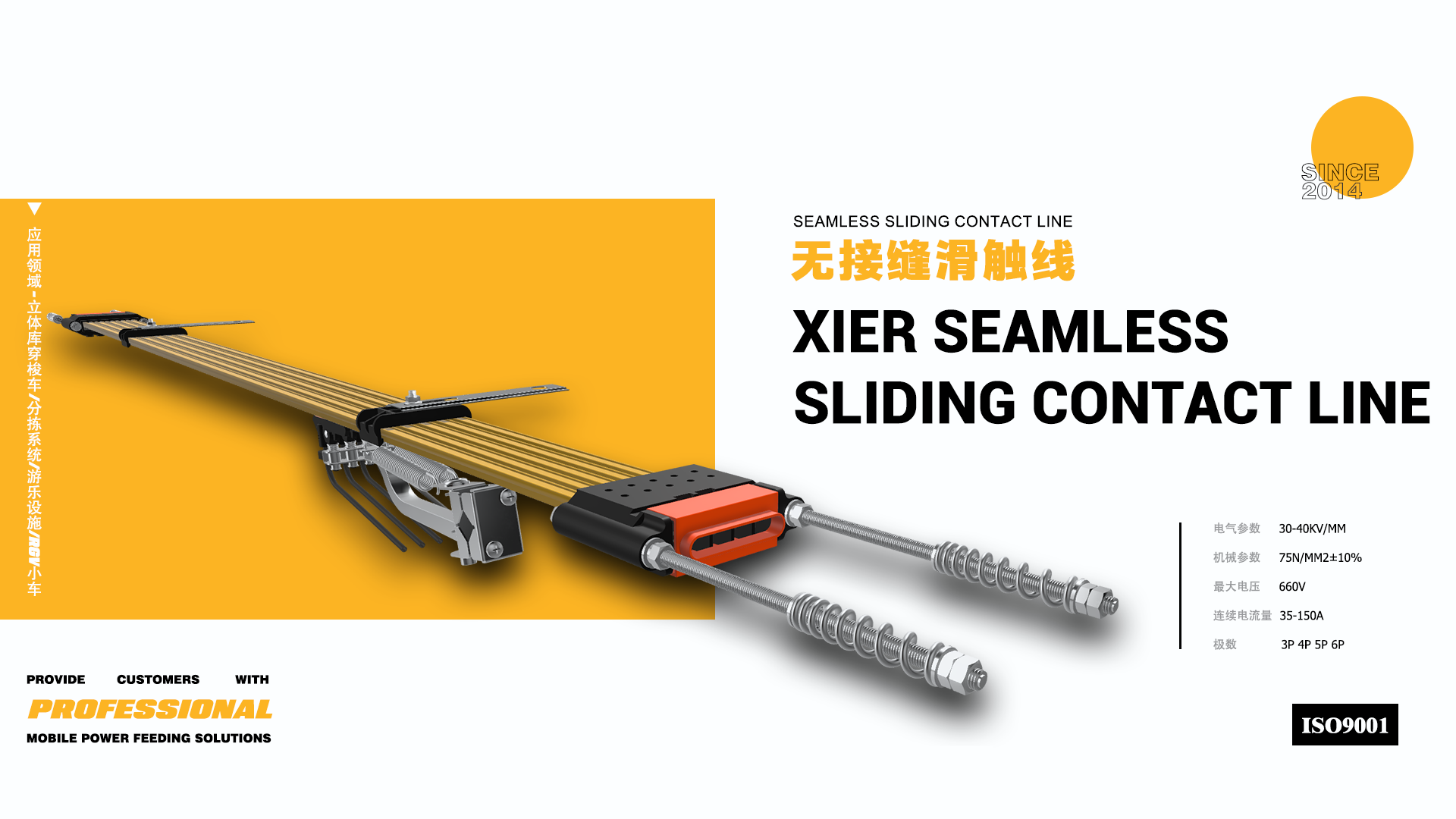 揚州希爾電氣有限公司地處歷史名城揚州,位于中國"荷藕之鄉"--寶應、京杭大運河和京滬高速穿境而過,這里環境幽雅,交通十分便利。 主要產品有單極滑觸線、剛體滑觸線、多極滑觸線、安全滑觸線、手指保護式滑觸線、單極組合式安全滑觸線,管式滑觸線、電纜拖令系統、行車小車支撐系統、穿梭機供電、電動自行小車滑觸線等滑觸線以及母線槽、移動饋電、低壓電氣、物流輸送、電纜橋架等移動饋電裝置系列。主要用于港口鐵路能源交通、冶金、有色、化工、機械、汽車制造、物流輸送等行業,由于不斷增添成套生產設備提高生產工藝水平,產品深受用戶好評。
